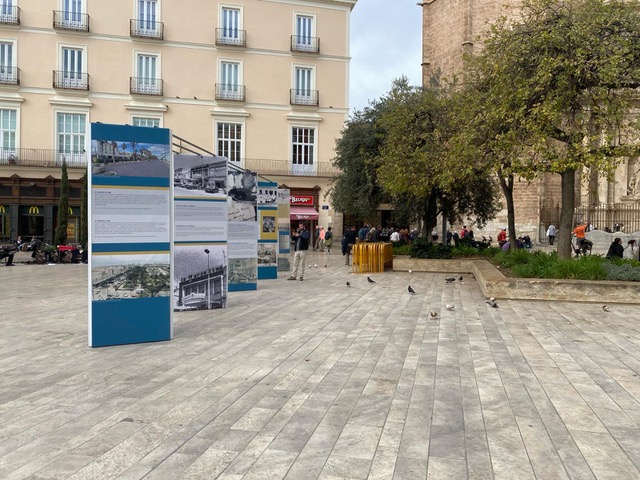 La plaza de la Reina acoge una exposición sobre el centenario de los restaurantes del paseo de Neptuno