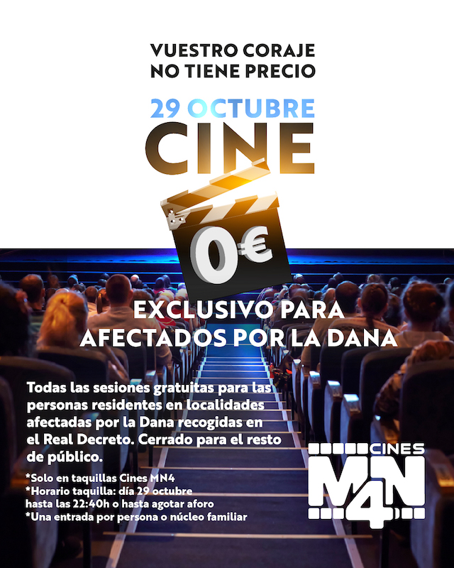 Un año después de la DANA que golpeó duramente a numerosas localidades de la Comunitat Valenciana, Cines MN4 rendirá homenaje a la fortaleza, unión y resiliencia de sus vecinos con una jornada de cine gratuito.