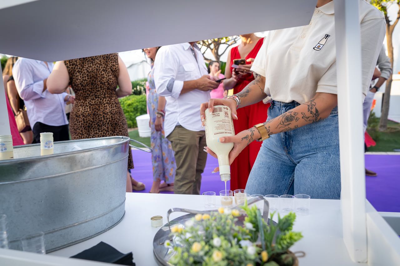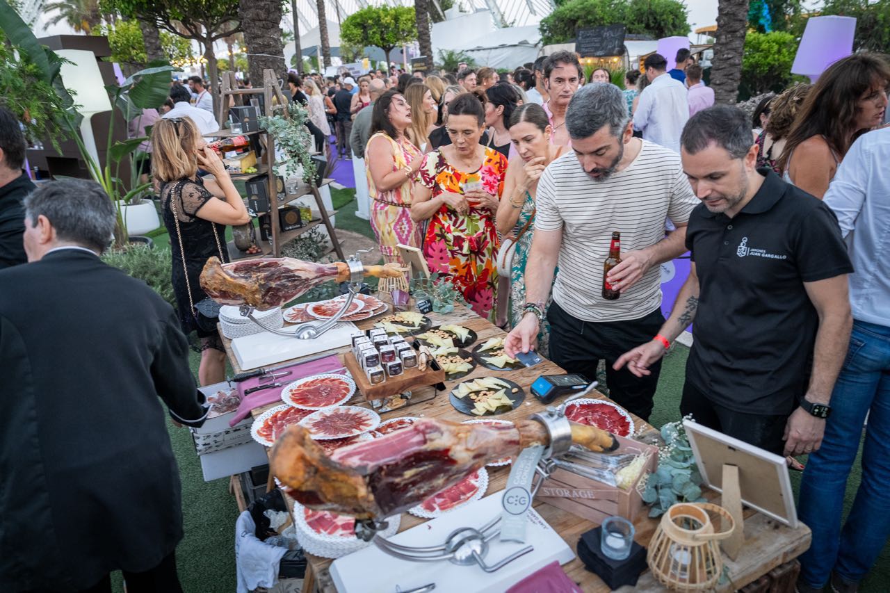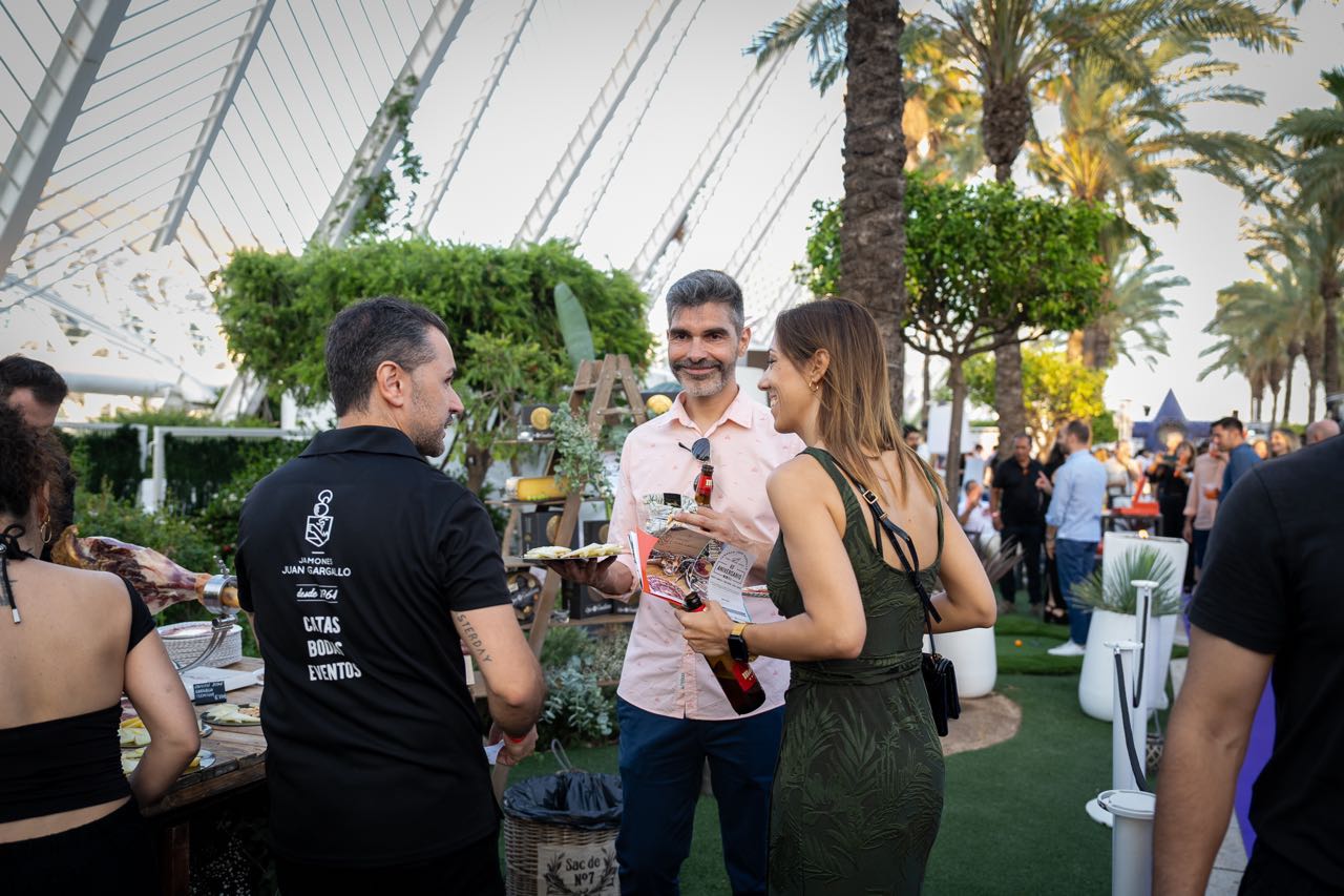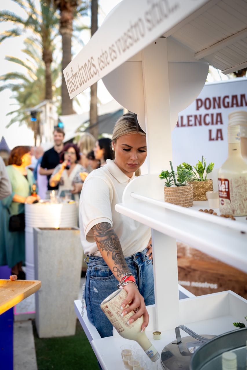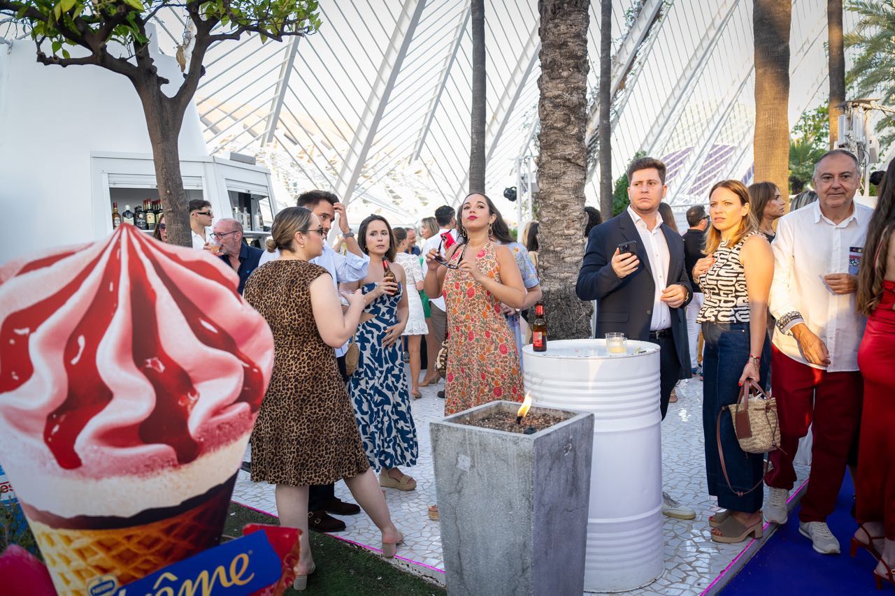 Además, la compañía valenciana Fartons Polo deleitó a los asistentes con una degustación de su crema de horchata Xé!, una bebida perfecta para degustar con hielo y con todo el sabor de valencia. Los helados Extreme estuvieron un año más presentes aportando un toque refrescante con su amplia variedad de helados gourmet, mientras que Mahou ofreció su amplia variedad de cervezas, que fueron las grandes protagonistas en los brindis de la velada. Marqués de Riscal aportó un toque de sofisticación con sus prestigiosos vinos, complementando a la perfección la oferta gastronómica, que fue otro de los puntos fuertes de la noche.