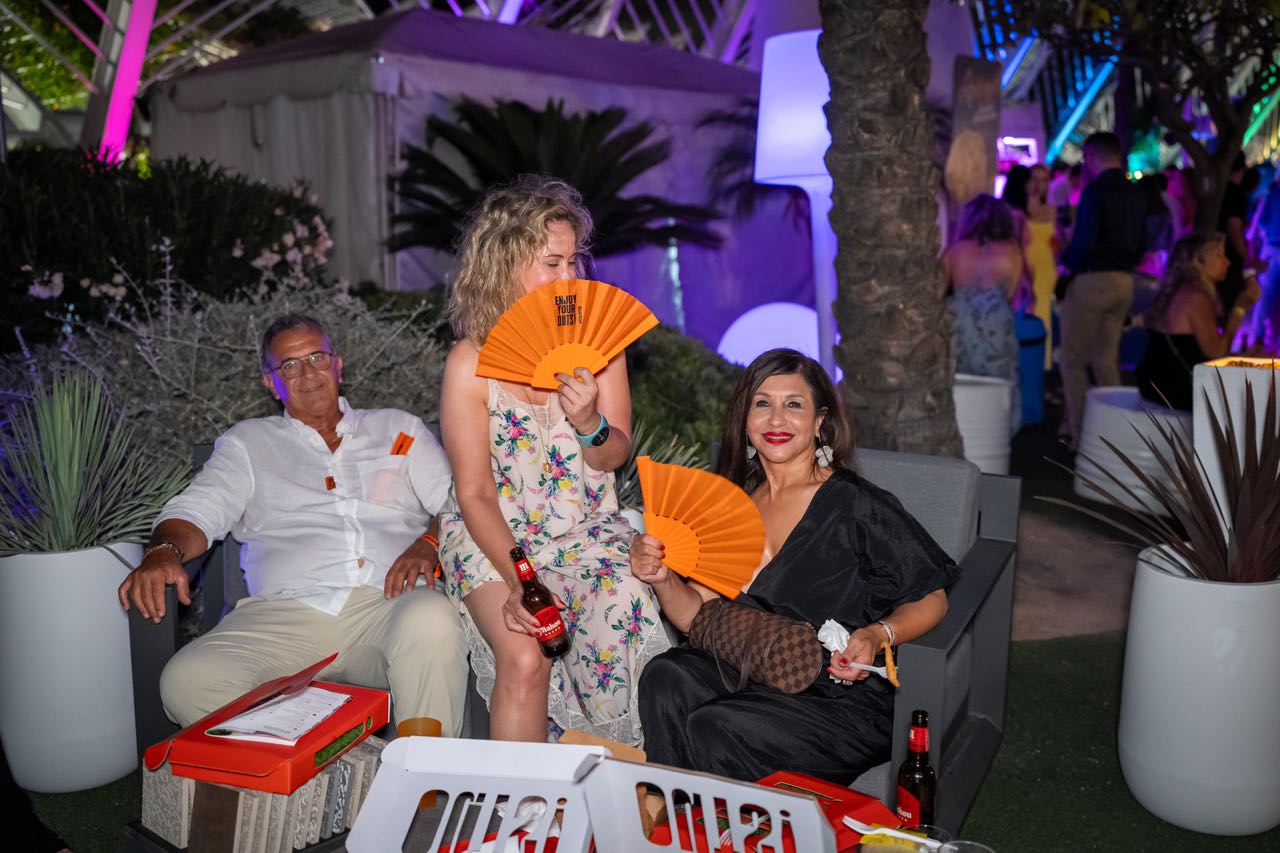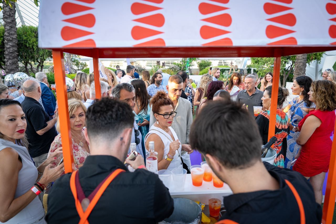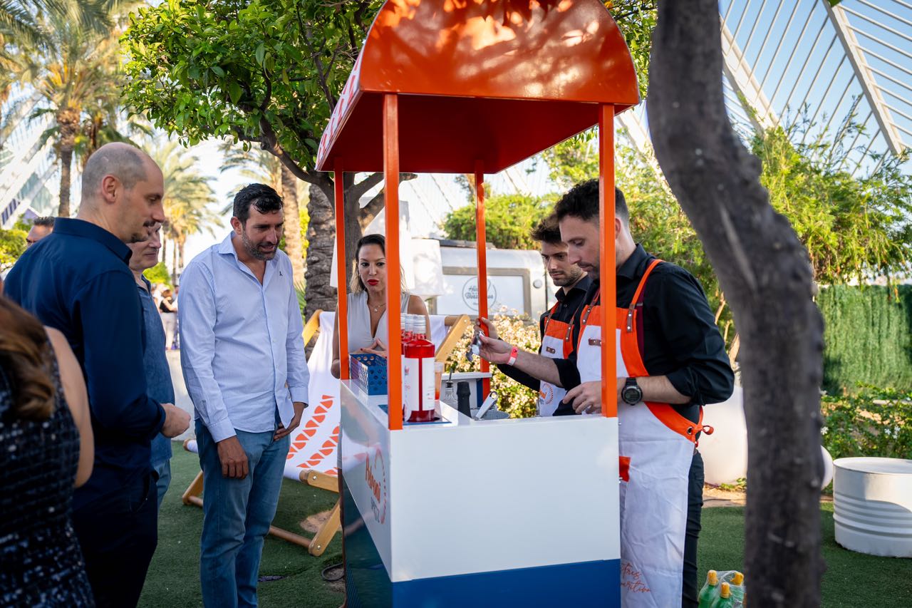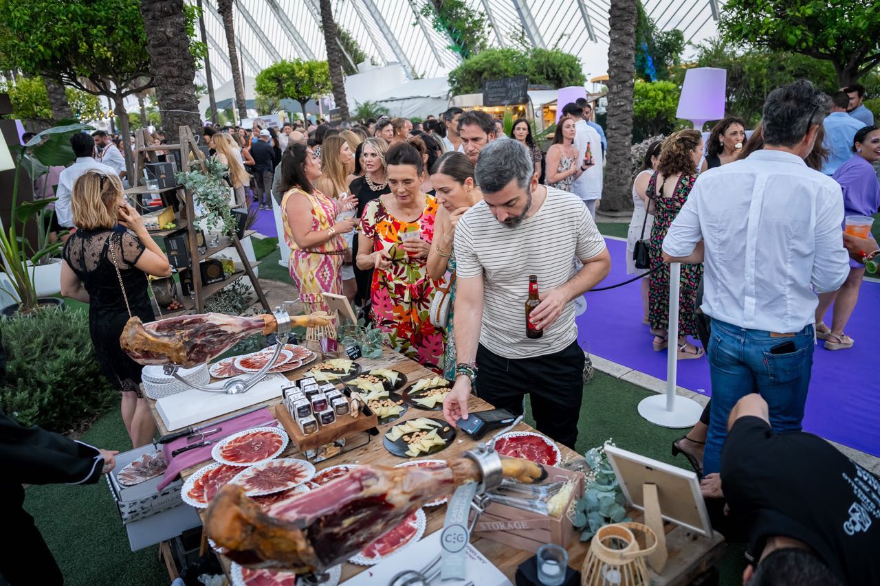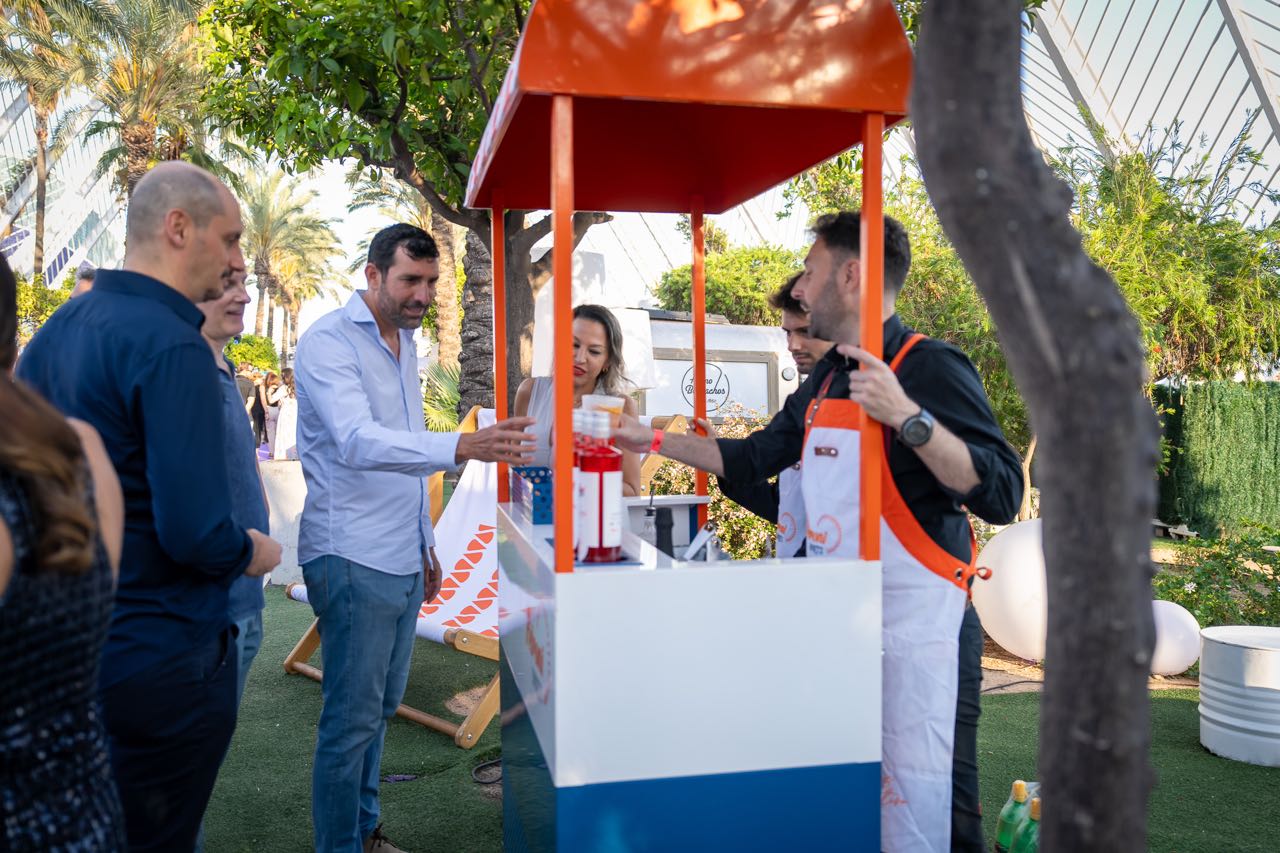 Además, la compañía valenciana Fartons Polo deleitó a los asistentes con una degustación de su crema de horchata Xé!, una bebida perfecta para degustar con hielo y con todo el sabor de valencia. Los helados Extreme estuvieron un año más presentes aportando un toque refrescante con su amplia variedad de helados gourmet, mientras que Mahou ofreció su amplia variedad de cervezas, que fueron las grandes protagonistas en los brindis de la velada. Marqués de Riscal aportó un toque de sofisticación con sus prestigiosos vinos, complementando a la perfección la oferta gastronómica, que fue otro de los puntos fuertes de la noche.