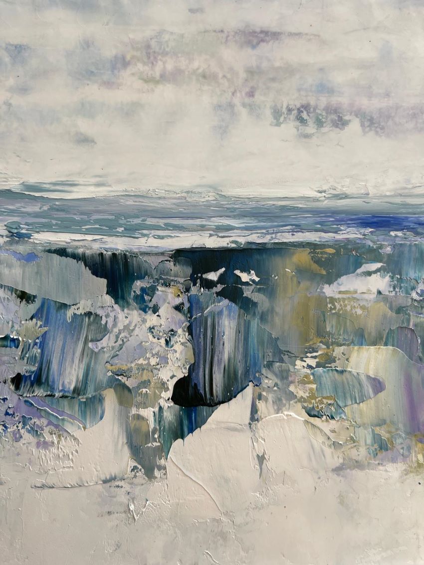 “Paisajes Imaginarios” es una reflexión sobre el proceso creativo que nace del lienzo en blanco y evoluciona hacia la construcción de espacios que, aunque no pertenecen a ningún lugar real, despiertan una sensación de familiaridad en el espectador. En este sentido, la exposición invita a habitar estos paisajes emocionales, donde la realidad y la introspección se fusionan.