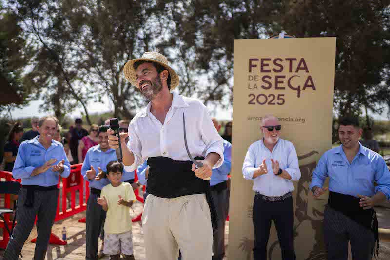 El acto finalizó con la entrega del reconocimiento a Arturo Valls como Segador de Honor. El actor, que recientemente lanzó su propia marca de arroz, ‘Socarrón’, agradeció el galardón y se atrevió a interpretar un cant de batre.