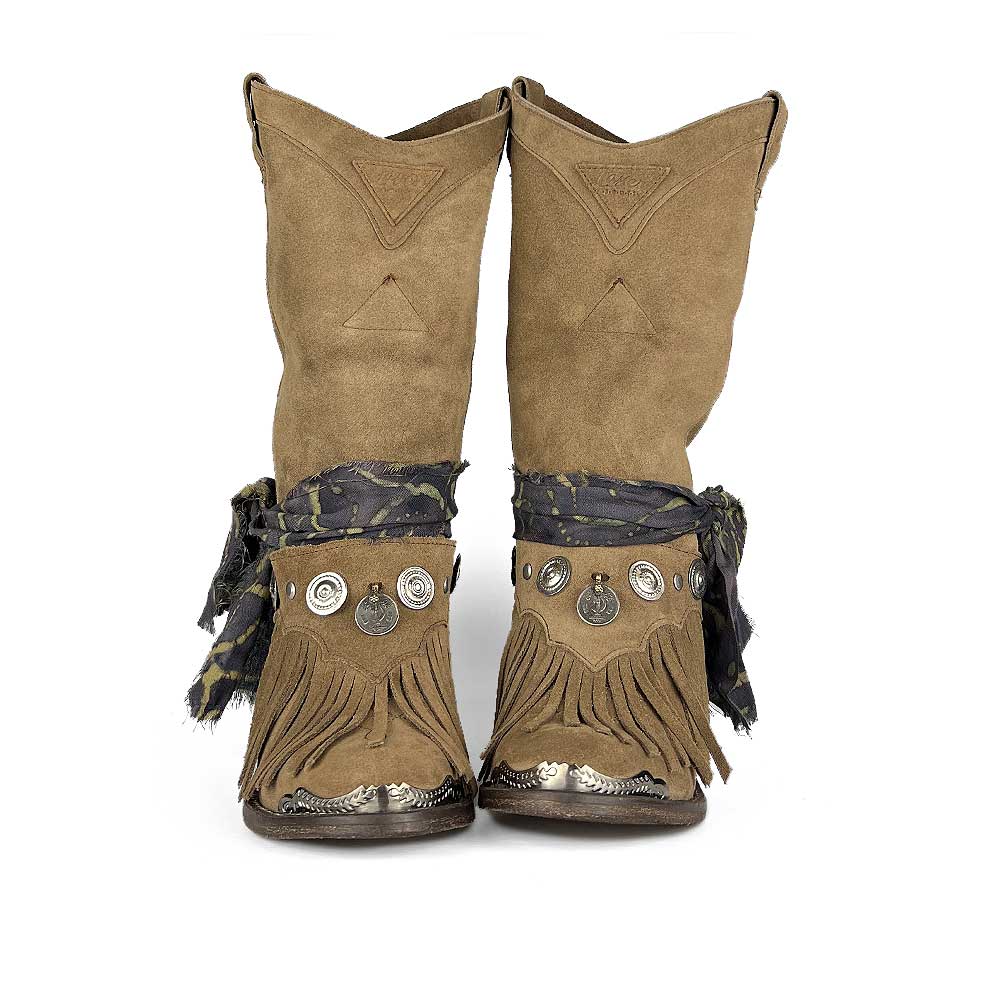 Todo empezó cuando personalizaron un par de botas en casa, con recuerdos, collares, telas, monedas…traídas de diferentes países del mundo por donde hemos viajado.