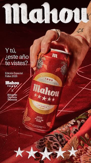 Mahou Cinco Estrellas se viste de Fallas con una edición limitada diseñada por el valenciano Eduardo Cervera. La marca traslada la riqueza de la indumentaria valenciana a su etiqueta, rindiendo homenaje a una de las fiestas más grandes de España.