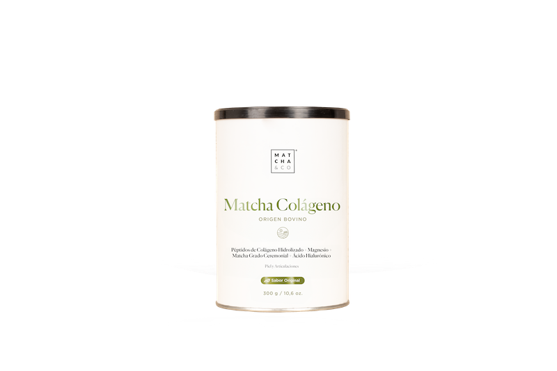 El suplemento combina colágeno hidrolizado de tipo I y III, matcha de grado ceremonial, ácido hialurónico y magnesio, formando una mezcla que apoya la salud de la piel, las articulaciones y el bienestar general.