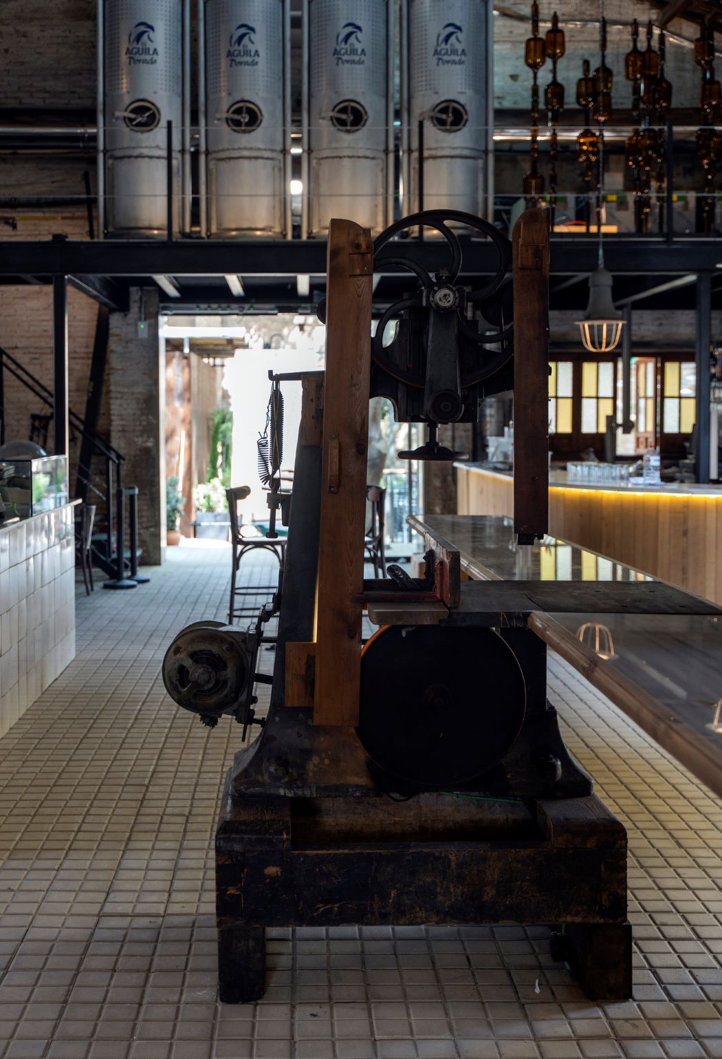 El proyecto de rehabilitación llevado a cabo ha puesto especial énfasis en la restauración y reutilización de las estructuras originales y algunas piezas de mobiliario que permanecían intactas tras décadas de abandono. Se ha respetado gran parte de la mampostería y la carpintería original, y se le han dado nuevos usos a algunas de las máquinas que se utilizaban para el ensamblaje de toneles. Además, podemos ver la obra de diferentes artistas locales que han realizado para Mercader piezas ornamentales y de iluminación a partir de materiales de desecho.