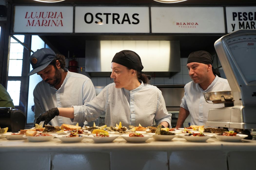 Pescados Bianca: Una pequeña réplica del emblemático puesto que gestiona desde 1950 esta familia de pescaderos en el Mercado del Cabanyal. En ella, además del expositor de producto, se ofrecerá al cliente un servicio de hervidero de marisco y elaboraciones al momento con plancha y freiduría. Entre otros productos, podrán consumirse gamba rayada y cigala de Isla Cristina, calamar de playa, tataki de atún, tartar de salmón y ostras de diferentes procedencias y con distintos tipos de preparaciones (rebozadas, con receta filipina o acompañadas de caviar y wakame).