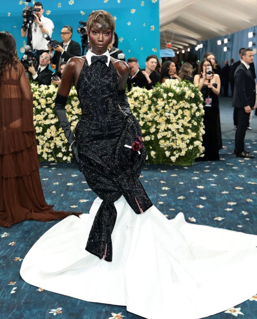 La exposición del propio museo propone un homenaje al legado de la sastrería en las identidades negras desde el siglo XVIII hasta hoy, inspirado en un ensayo de Mónica L. Miller, en el que se pone sobre la mesa el dandismo negro como estructura de lucha y reivindicación. En cambio, el dress code para los asistentes funcionaba como una invitación abierta a reinterpretar esa idea. Aunque, si algo estaba claro, es que en esta gala todo iría “a medida”.