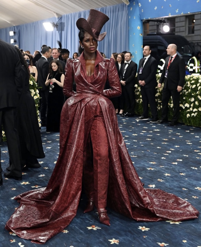 Teyana Taylor, copresentadora de la gala, dejó a todos boquiabiertos con un traje burdeos personalizado por la icónica diseñadora Ruth E. Carter. El conjunto resaltaba por su elegancia y originalidad, incorporando detalles inesperados que realzaban su estilo único y rendían homenaje a la moda afroamericana.