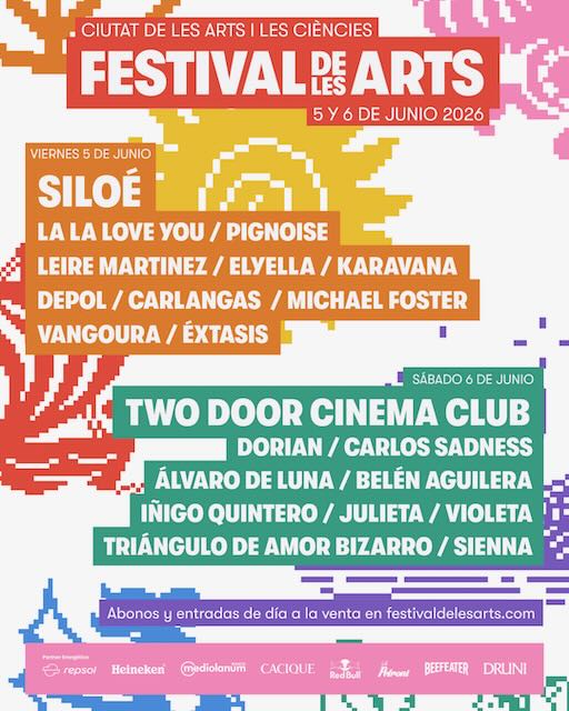 El Festival de les Arts 2026 confirma a los primeros artistas de su cartel y anuncia la venta de entradas de día. La cita tendrá lugar los días 5 y 6 de junio en la Ciutat de les Arts i les Ciències de València, consolidándose como uno de los eventos musicales más importantes del verano.
