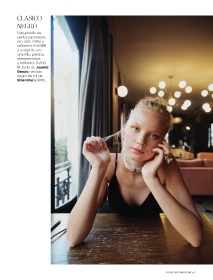 CLÁSICO NEGRO Gargantilla de perlas japonesas, oro, rubí, zafiro y brillantes (4.600€) y sortija de oro amarillo, piedras semipreciosas y brillantes (4.600 €), todo de Joyería Gracia; vestido negro de tul de Valentina´s (89€). 103