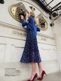 CLAVE KLEIN Pendientes flecos de Le Glamm (C.P.V); jersey de punto de Brownie (49€); falda midi con encaje de Sandro (225€); salones burdeos de Primadonna Collection (39,99€). 106