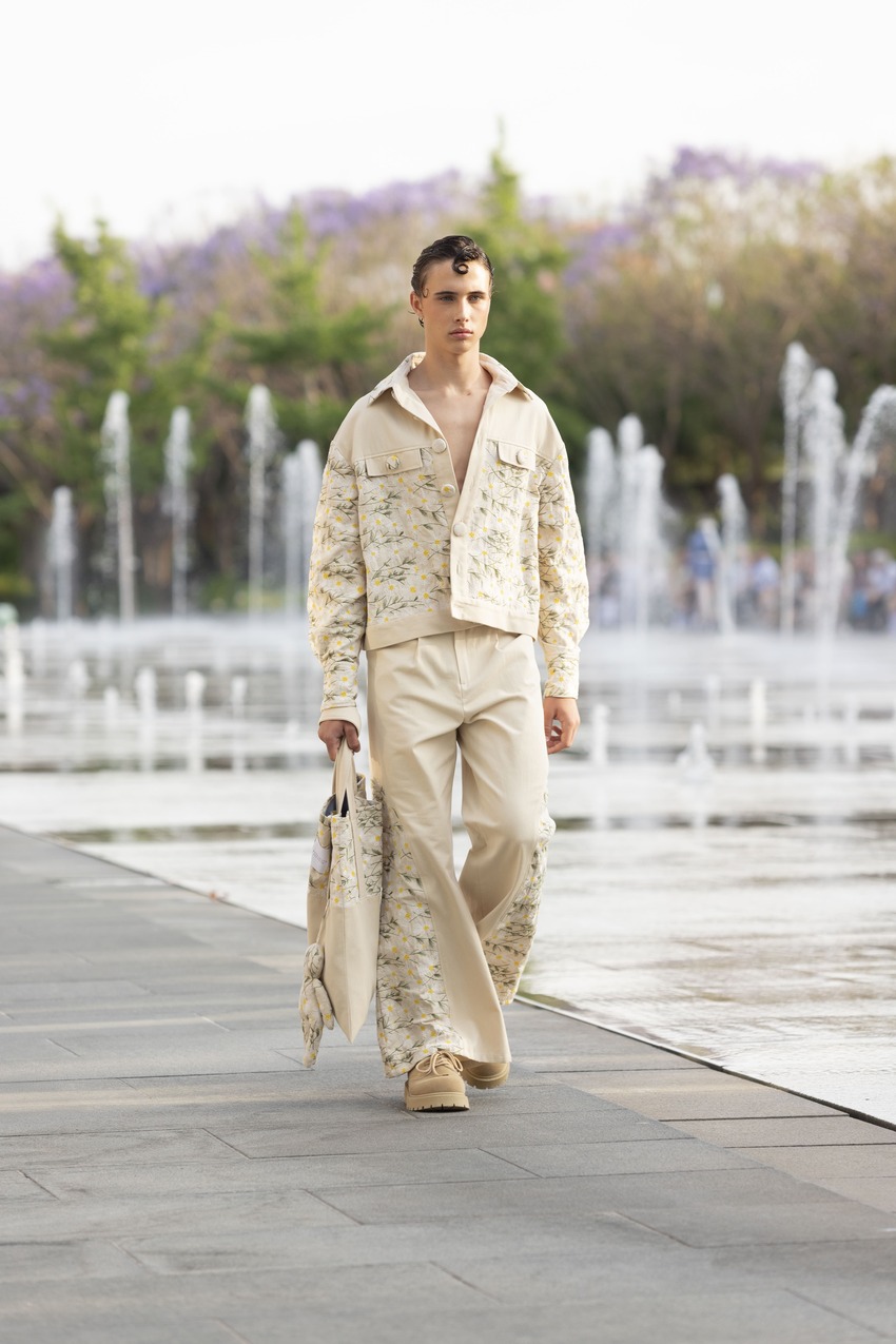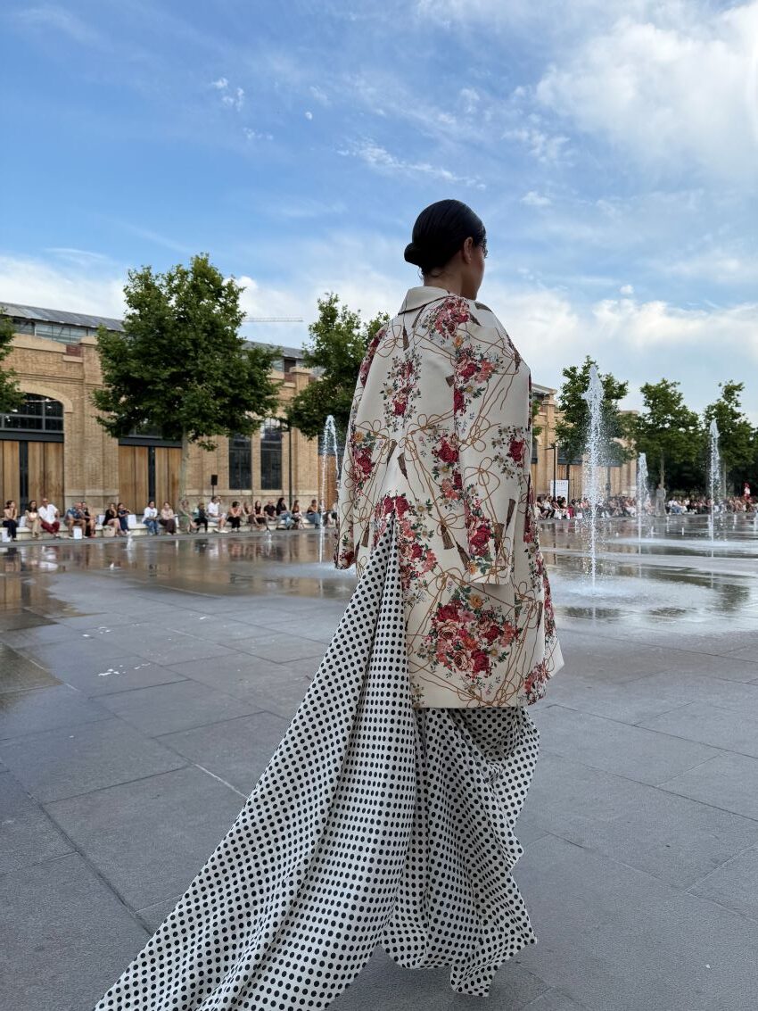 La puesta en escena convirtió la Nave 3 del Parc Central en un universo suspendido entre la realidad y lo onírico. Rodeado de fuentes de agua, el espacio se transformó en un paisaje sensorial donde la naturaleza dialogaba con la moda. Una banda sonora envolvente —elegida con precisión para la ocasión— reforzaba la atmósfera.