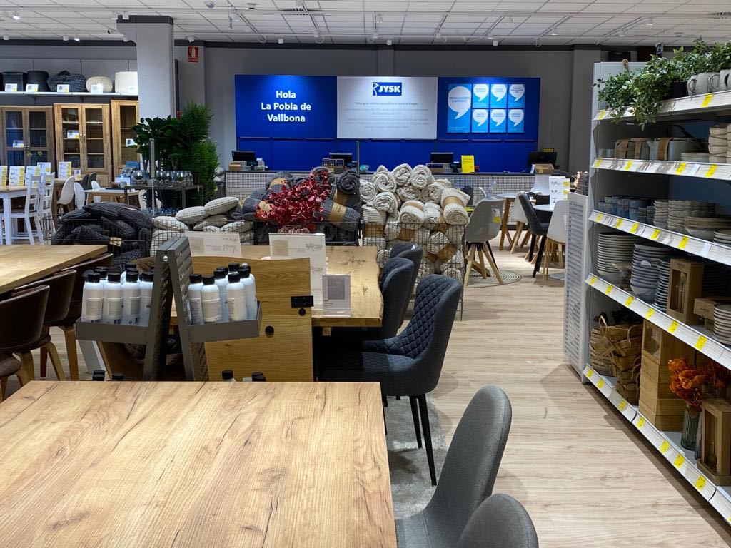 En este punto de venta, como en cada uno de éstos, se respira una estética danesa y una marcada línea nórdica acorde a las tendencias. Si algo tiene claro JYSK es que no quiere perder su esencia escandinava, a la vez que ofrece precios altamente competitivos.