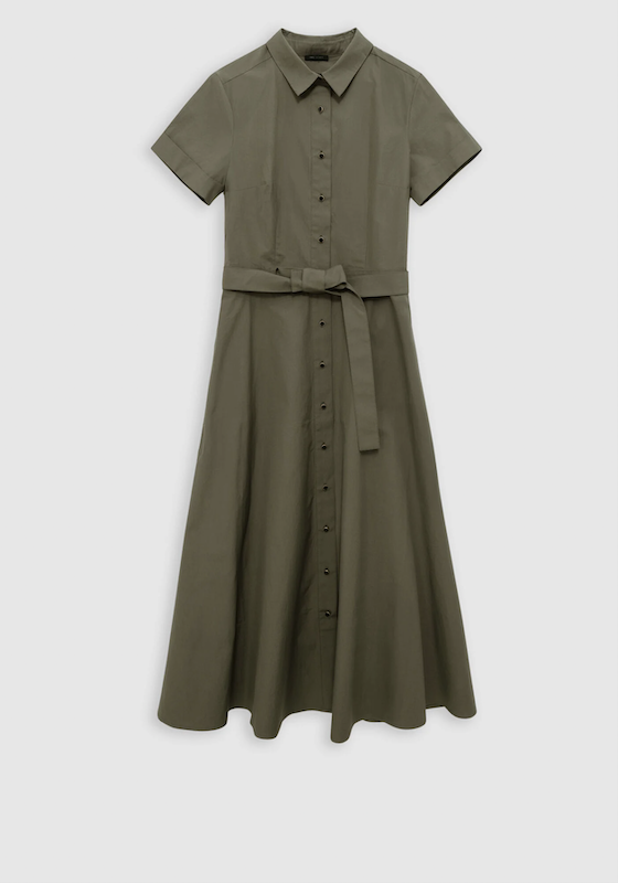 El vestido camisero caqui midi (KKS) es pulcro, cómodo y versátil. Aprobado asegurado para jornadas largas que terminan en planes after class.