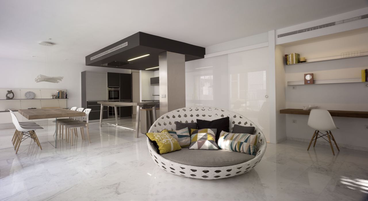 Especializada en residencial y llave en mano, acompaña al cliente desde la reforma hasta el último detalle de decoración, como la última renovación del restaurante Contrapunto del Palau de les Arts. Su estilo es atemporal, sobrio y elegante, tanto en casas de arquitectura moderna, pisos en la ciudad, como casas de campo o apartamentos en la costa.