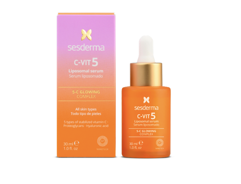 C-VIT 5 ilumina la piel con cinco formas de vitamina C estabilizada en liposomas. Su fórmula incluye ácido hialurónico, proteoglicanos y centella asiática, que trabajan en conjunto para lograr una piel más suave, luminosa y rejuvenecida.