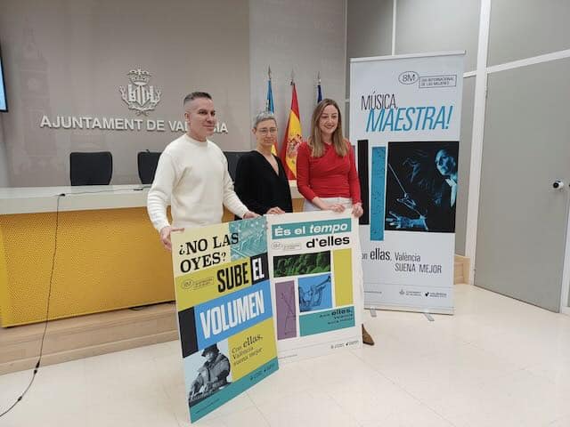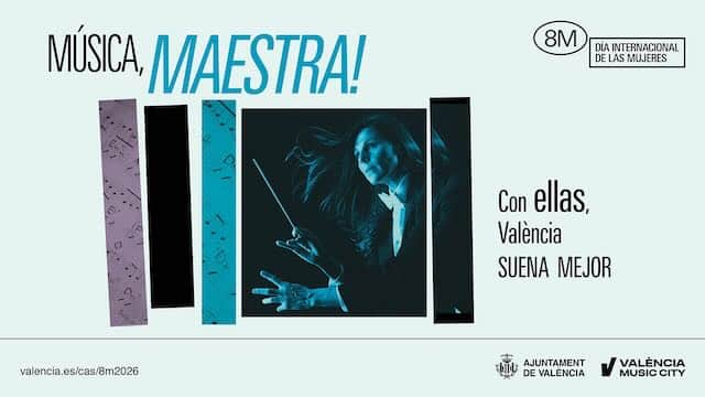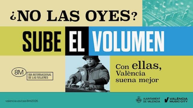 València centra el 8M en la contribución de las mujeres al mundo de la música con el lema “Con ellas, València suena mejor”. Este año, el mensaje se desglosa en tres frases: “Música, maestra”, “¿No las escuchas? ¡Sube el volumen!” y “Es el tempo de ellas”, que resaltan la presencia femenina como directoras de orquesta, dj y compositoras en todas las vertientes musicales.