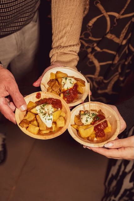 El Vermúdez Fest arrancó a las 20:00 horas con un vermut casero y una gilda para abrir boca. El jamón ibérico, la ensaladilla rusa y las patatas bravas actuaron como teloneros, mientras que el torrezno de pulpo brilló sobre el escenario a las 22:00 horas, dejando boquiabiertos a los invitados. Después llegaron el atún rojo picante con huevos y patatas y el canelón de vaca madurada con trufa blanca. La tarta de queso semilíquida puso el broche final junto a un gin tonic en el espacio Bambalino.